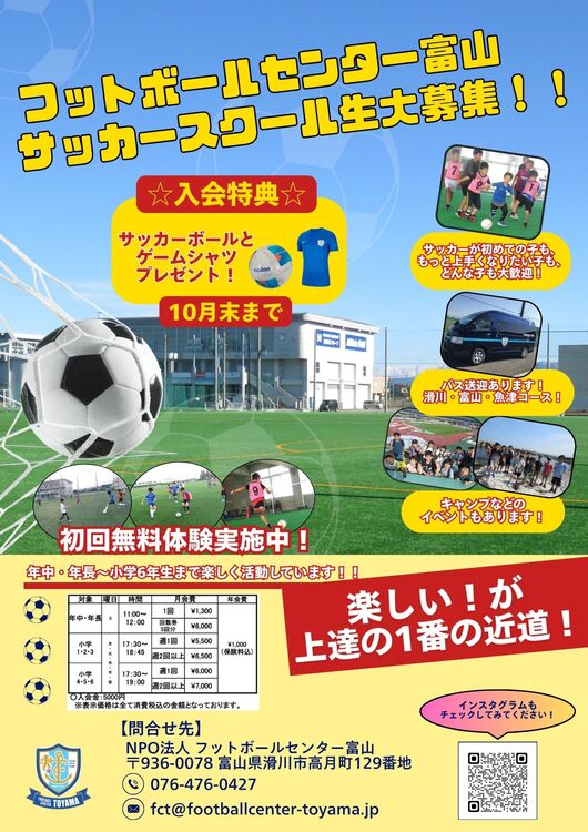 フットボールセンター富山サッカースクールからのお知らせです♪♪
